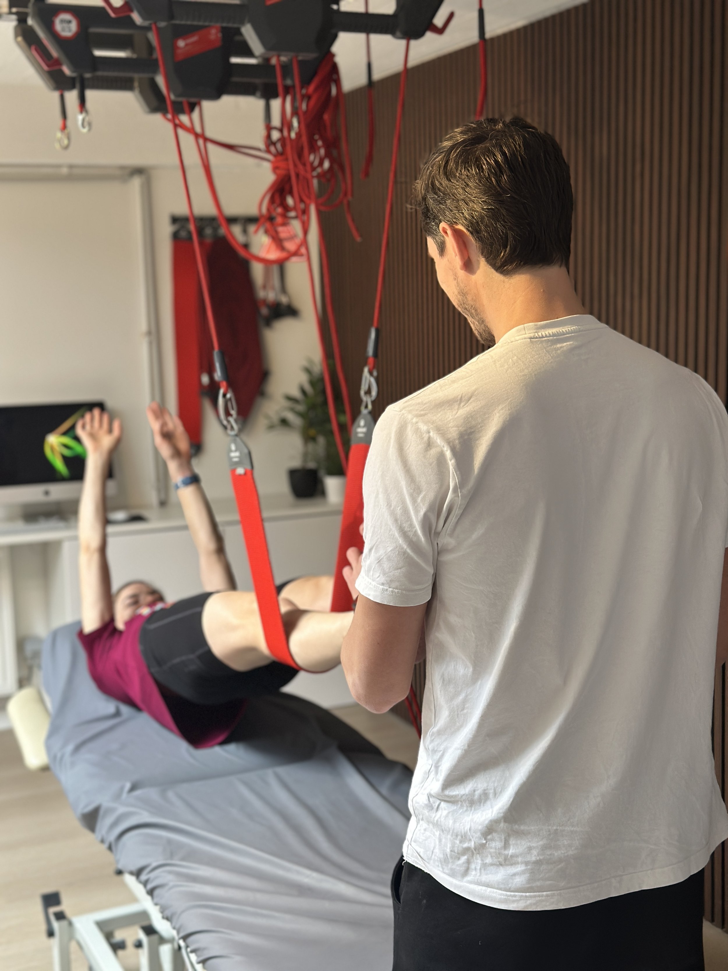 Met behulp van het Redcord-suspensiesysteem analyseren we jouw bewegingspatronen en activeren we spiergroepen die te weinig of foutief worden aangesproken. Deze therapie stimuleert je neuromusculair systeem, verbetert stabiliteit, coördinatie en kracht. Redcord is bijzonder effectief bij het corrigeren van compenserende patronen die vaak leiden tot blessures.